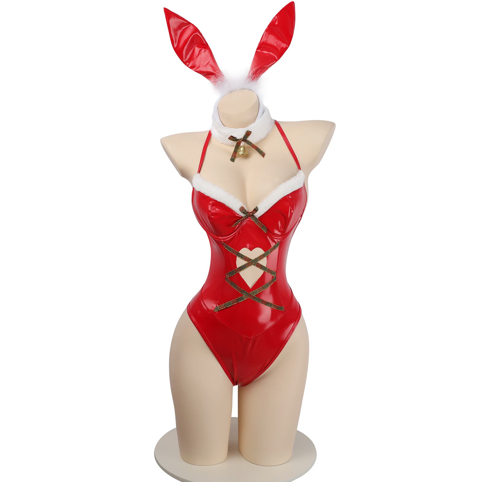 クリスマス サンタ コスプレ セクシー バニーガール バニー うさぎ 可愛い サンタコス 衣装 サンタクロース 仮装 コスチューム 演出服 イベント パーティー 舞台 新年会 文化祭 レディース ワンピース ピンク レッド6002