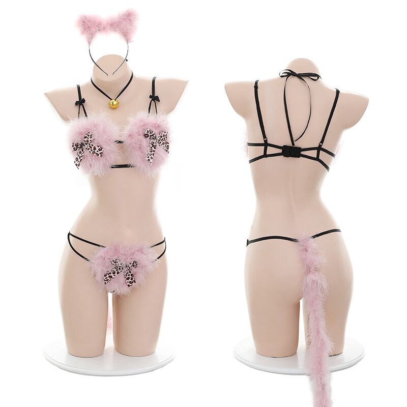 SENMHS 猫 ヒョウ コスプレ セクシー ビキニ ネコ エロ エッチ 調教 誘惑 過激 貧乳 猫様 下着 大胆 ボディコン レオタード ランジェリー ベビードール 豹柄 キャット コスチューム かわいい 萌え萌え 虎耳 カチューシャ レディース ワンサイズ6962pink