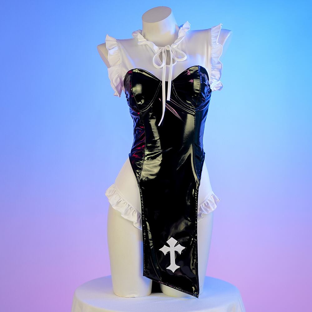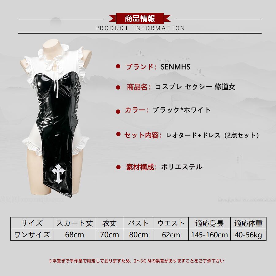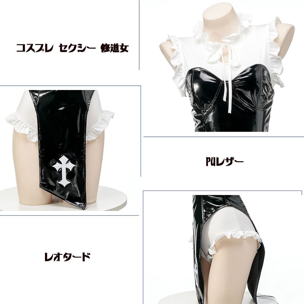 SENMHS コスプレ セクシー シスター 修道女 コスチューム ランジェリー 聖女 十字架 オープンクロッチ かわいい ランジェリー ハロウィン ブラック レディース カチューシャ トップス レオタード 手袋 レッグリング ニップレス 6点セットc2018