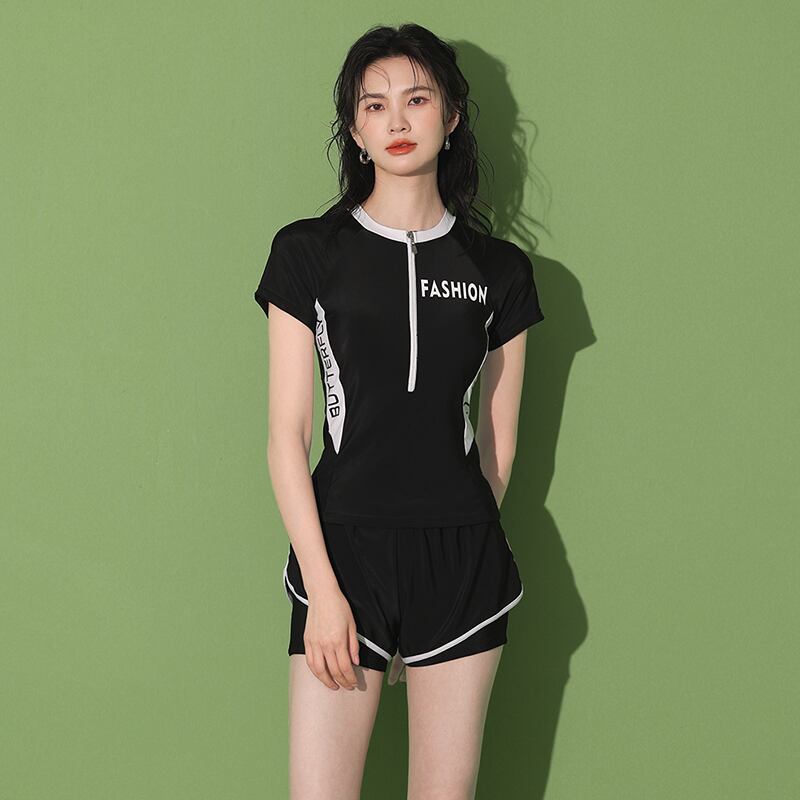 商品名:SENMHS 水着 レディース 体型カバー フィットネス水着 かわいい おしゃれ オールインワン エレガント 露出控えめ ノンワイヤー トップス パンツ 2点セット 20代 30代 40代 ママ水着 海 温泉 旅行 ブラック202256
