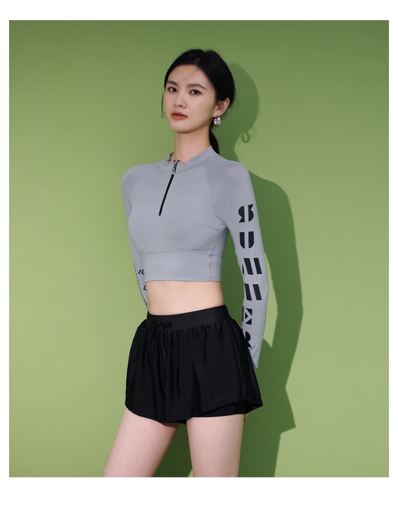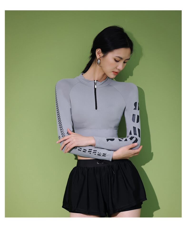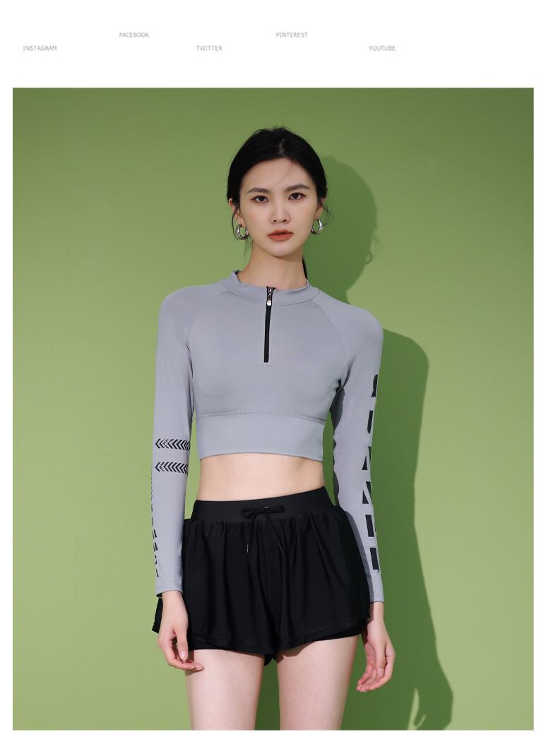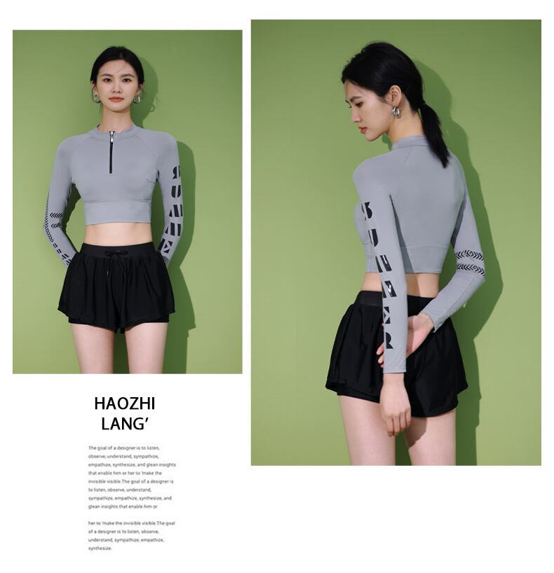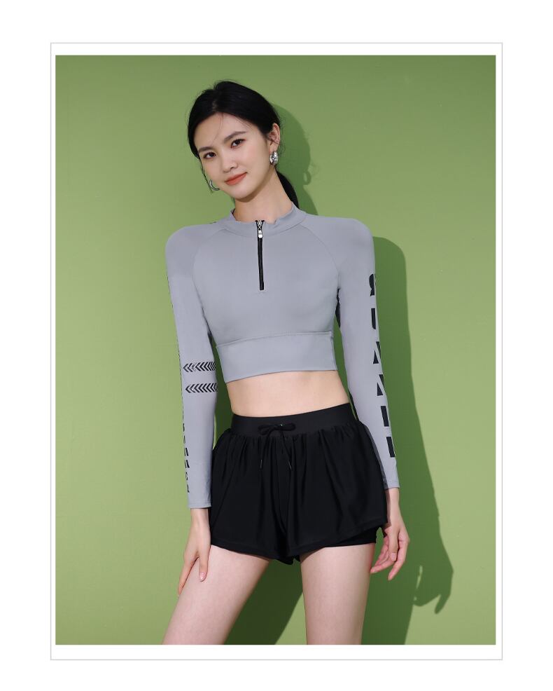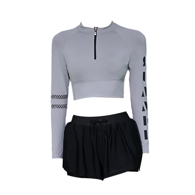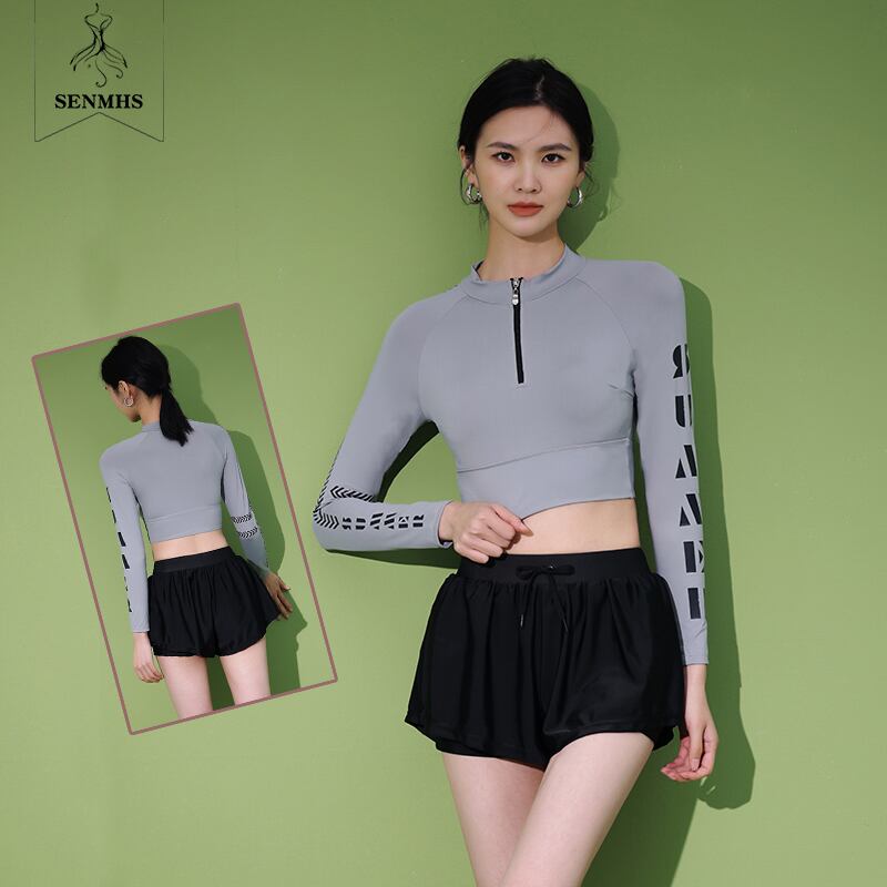 SENMHS 水着 レディース 体型カバー フィットネス水着 かわいい おしゃれ オールインワン エレガント 露出控えめ ノンワイヤー 2点セット 20代 30代 40代 ママ水着 海 温泉 旅行 グレー9823