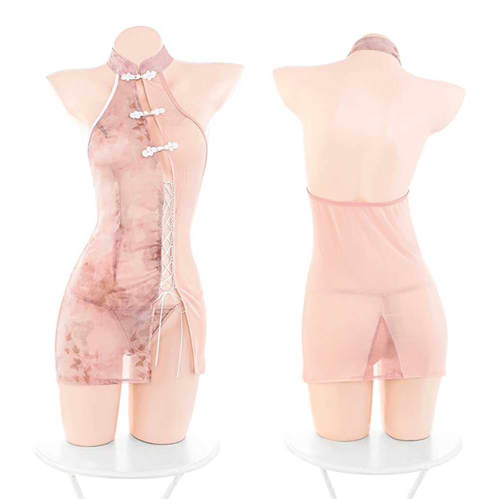 SENMHS チャイナ チャイナドレス チャイナ服 コスプレ セクシー ミニ エッチ エロ ランジェリー ベビードール エッチ な 下着 過激 貧乳 ワンピース Tバック付き ピンク6891