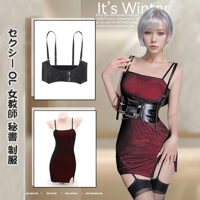商品名:SENMHS シースルー セクシー OL 女教師 秘書 制服 ランジェリー エロ エッチ な コスプレ 下着 過激 ミニ丈 興奮 ボンテージ 胸開き 露出 ボディコン コスチューム 誘惑 女性 大人 ワンサイズ レッド6952