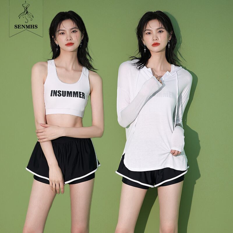 SENMHS 水着 レディース 体型カバー フィットネス水着 かわいい おしゃれ オールインワン エレガント 露出控えめ ノンワイヤー 3点セット 20代 30代 40代 ママ水着 海 温泉 旅行 ブラック ホワイト8247