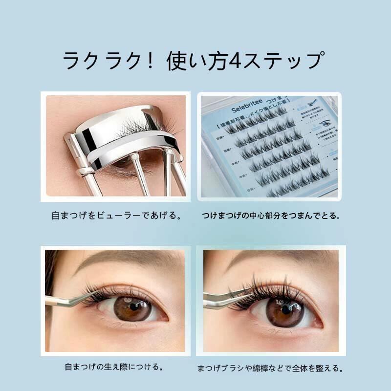 ■ノリがいらない新感覚つけまつげ!Selebriteeの部分用接着剤付き付けまつげは、セグメント化された自己接着タイプで、手間いらずの簡単装着が魅力です。高級繊維を使用しており、自然な仕上がりを実現します。これで、理想の目元を手に入れる準備は完璧です!