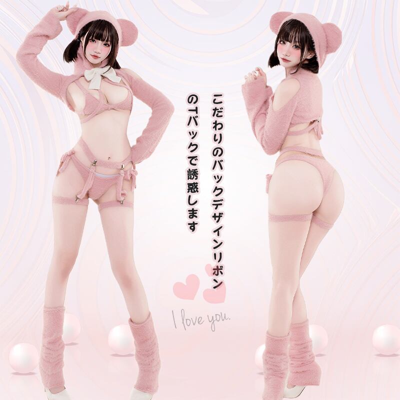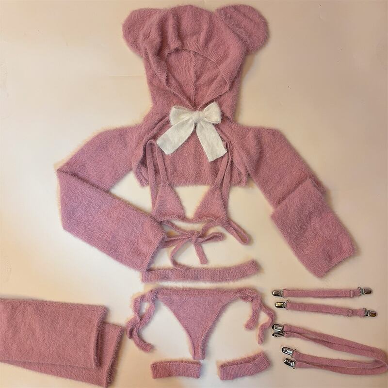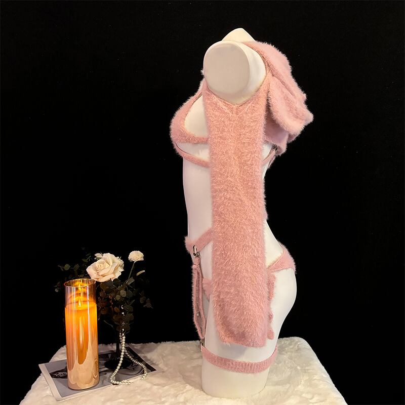 SENMHS 童貞を殺すセーター ロリータ ニット ビキニ セーター セクシー ハイネック ファッション おもしろ コスプレ服 コスチューム 団子少女風 コスチューム イベント パーティー 変装 仮装 撮影 レディース トップス ビキニ 手袋 靴下 ガーター レッキスラビットファーdg06